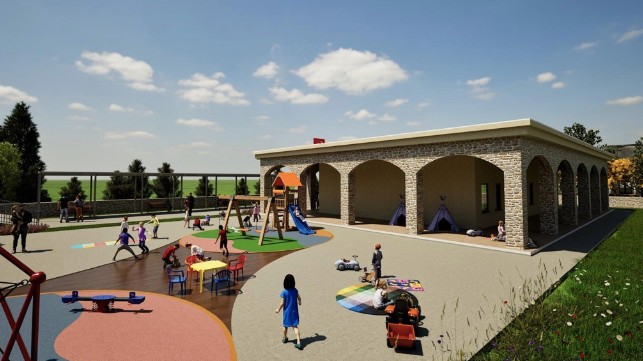 Alaçatı Mahallesi’nde 1600 m² alana inşa edilecek merkez, 195 m² kapalı alanı ve 3 sınıfıyla 36 çocuk kapasiteli gündüz bakım evi olarak planlandı. Açık oyun alanları, taş mimarisiyle uyumlu cephe tasarımı ve modern eğitim altyapısıyla çocukların güvenliği öncelikli olarak tasarlandı.