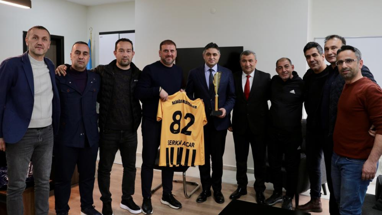 Sezonu zirvede bitirerek şampiyonluk ipini göğüsleyen Aliağa Masterler Kulübü’nde yönetim ve teknik heyet, Belediye Başkanı Serkan Acar’ı makamında ziyaret etti. Ziyarette konuşan Aliağa Masterler Kulüp Başkanı Zeki Akyüz, elde edilen başarıdan dolayı büyük gurur yaşadıklarını ifade etti. Başkan Acar’a spora ve sporcuya verdiği desteklerden dolayı teşekkür eden Akyüz, "Sezonu şampiyon tamamlamanın gururunu yaşıyoruz. Aliağa’nın spor kültürünü güçlendirmek ve her yaşta spor yapılabileceğini göstermek amacıyla çalışmalarımız sürüyor. Hedefimiz Ege Bölgesi finallerinde şampiyonluk ve Aliağa’yı iyi temsil etmek" dedi. Başkan Acar’a 82 numara ve üzerinde ismi yazılı özel forma hediye edildi.