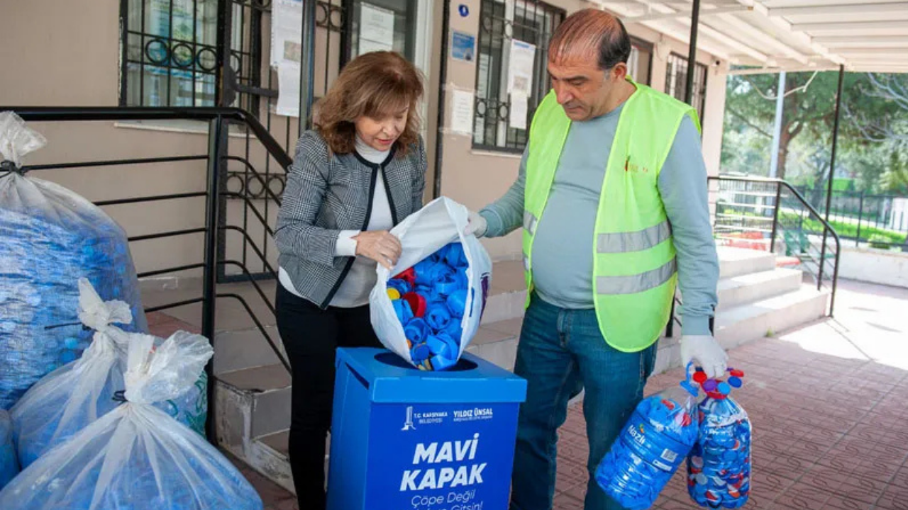 Uzun yıllar önce İzmir’de başlatılan ve daha sonra ülke genelinde yaygınlaşan “Mavi Kapak” kampanyası, Karşıyaka Belediyesi tarafından geçtiğimiz Ağustos ayında yeniden hayata geçirildi. Kampanya kapsamında kültür merkezleri, mahalle merkezleri, anaokulları ve muhtarlıklar dahil olmak üzere ilçede birçok noktaya kapak toplama kutuları yerleştirildi. İlçe genelinde yaklaşık 70 ayrı noktada yürütülen kampanya kapsamında damacana kapakları da dahil olmak üzere farklı renk ve türde plastik şişe kapakları toplanıyor. Toplanan kapaklar lisanslı geri dönüşüm firmalarına teslim edilerek ekonomiye yeniden kazandırılıyor. Her bir ton kapak karşılığında iki adet tekerlekli sandalye temin edilerek ihtiyaç sahibi engelli vatandaşlara ulaştırılıyor. Sandalyeler, Karşıyaka Belediyesi Sosyal Hizmetler Müdürlüğü tarafından belirlenen ihtiyaç sahiplerine teslim ediliyor.