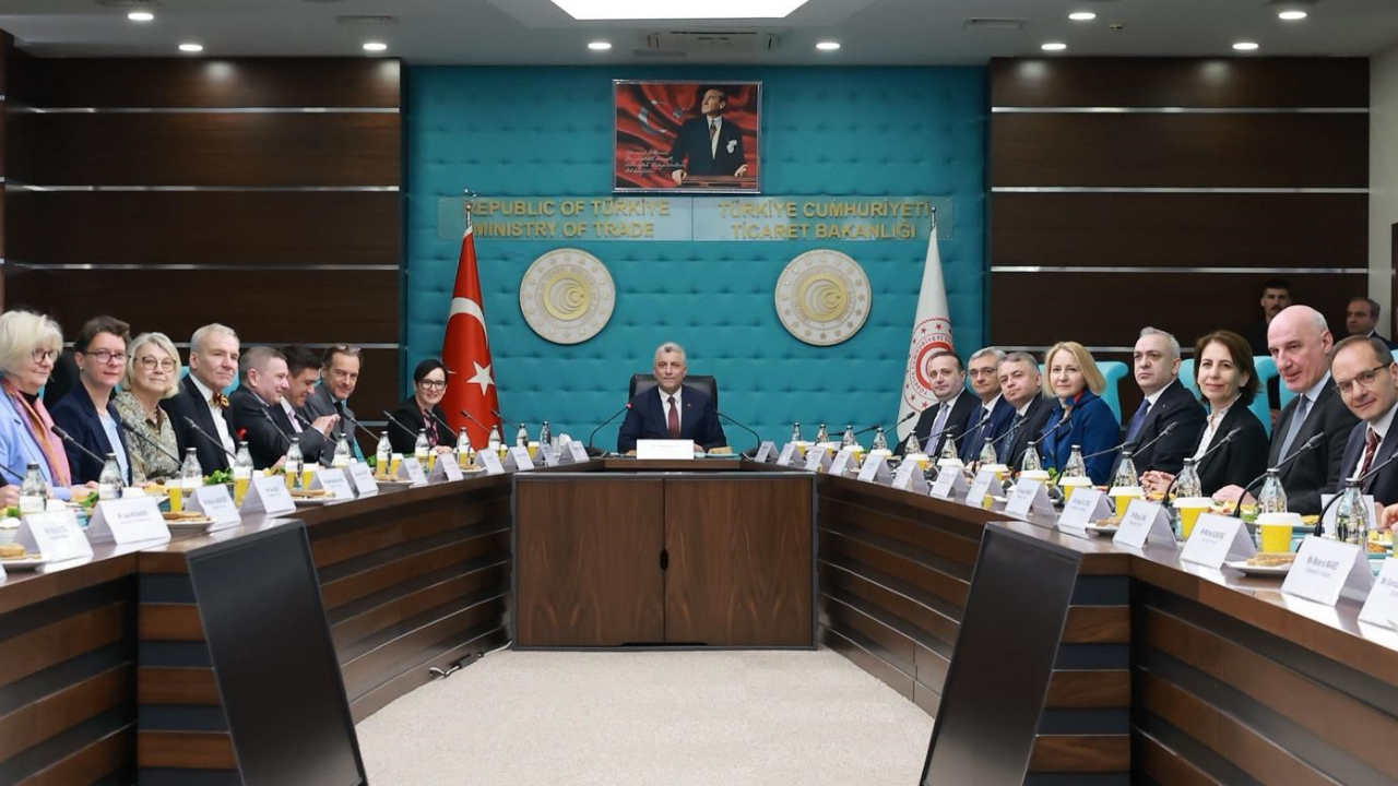 Ticaret Bakanı Ömer Bolat, Avrupa Birliği (AB) ülkeleri büyükelçileriyle Ticaret Bakanlığı’nda düzenlenen toplantıda bir araya geldi. Toplantıda Türkiye-AB ekonomik ilişkileri, ticaret hacmi ve küresel ekonomik gelişmeler ele alındı. Bolat, Türkiye’nin Avrupa ekonomisiyle derin bir entegrasyona sahip olduğunu ve bu ilişkinin her geçen yıl daha da güçlendiğini ifade etti.