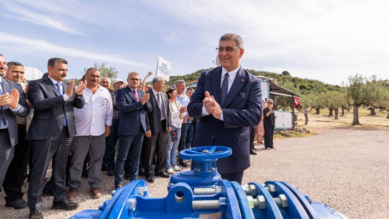 Konuşmaların ardından Başkan Cemil Tugay, Bademli’deki zeytinlik alana geçerek iletim hattının vanasını çevirdi. Tesisten gelen yüksek basınçlı su, damla sulama sistemiyle toprakla buluştu. Böylece bölgedeki çiftçilerin yıllardır beklediği su, üretimin hizmetine sunuldu.
