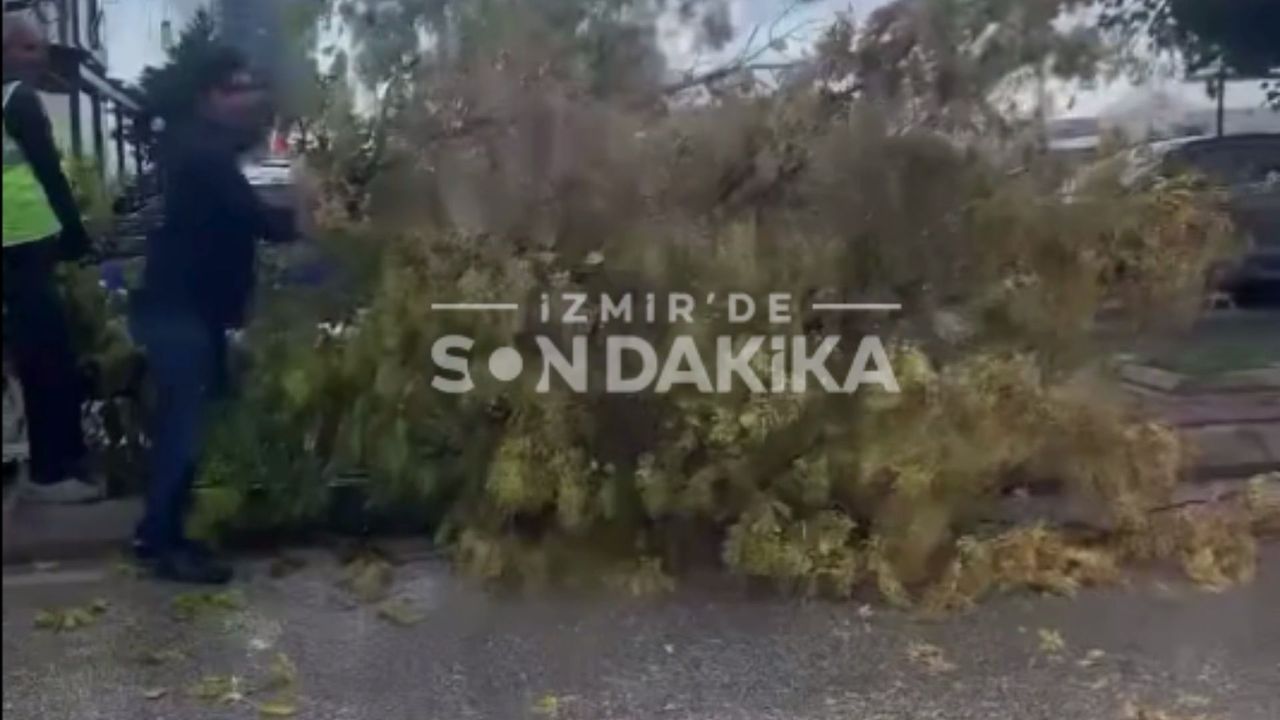 İzmir’in Bayraklı ilçesinde etkili olan şiddetli rüzgar, trafiği tehlikeye soktu. Adalet Mahallesi Manas Bulvarı’nda orta refüjde bulunan bir ağaç, kökünden koparak yola devrildi.
