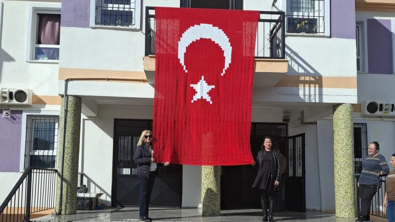 Okulun öğretmenleri ve idarecileri tarafından başlatılan çalışmada, Türk bayrağı ilmek ilmek örülerek hazırlandı.