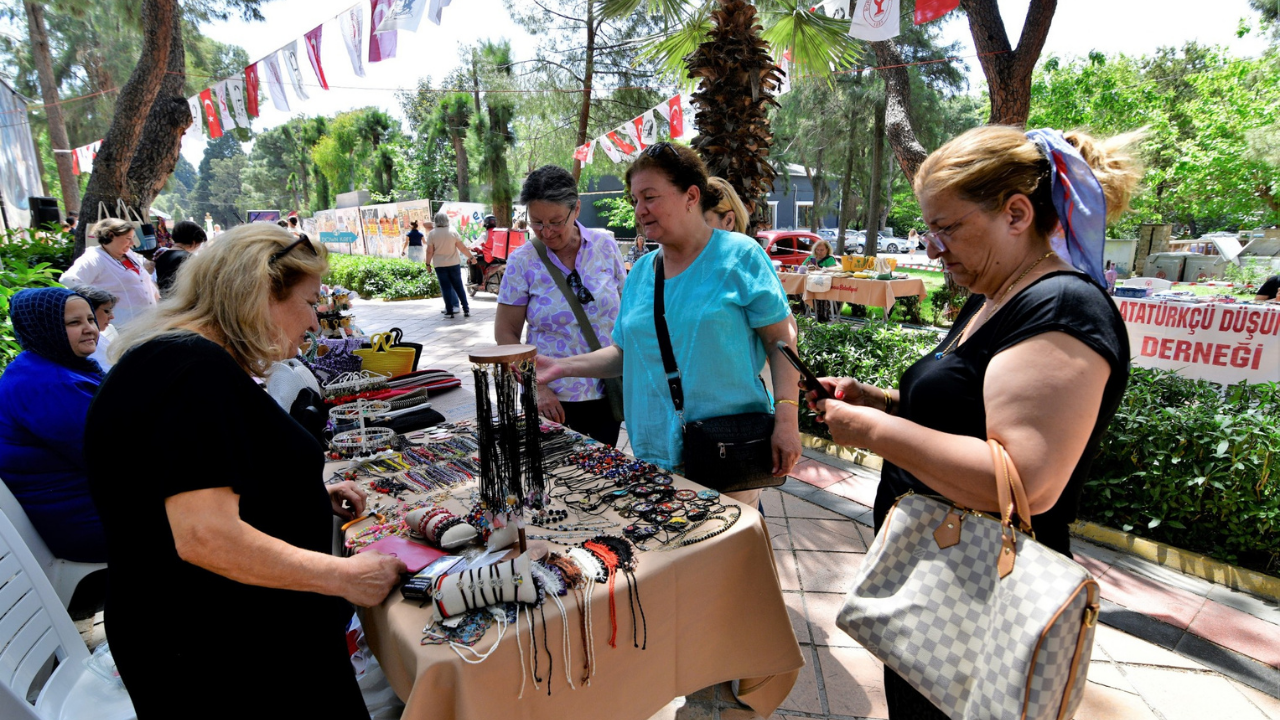 Büyükpark Kızlar Kahvesi önünde açılan sergide, Bornova Kadın Girişimi ve İşletme Kooperatifi üyeleri ile el sanatları kursiyerlerinin hazırladığı yüzlerce el emeği ürün sergileniyor. Takıdan çantaya, aksesuardan giysilere kadar uzanan geniş yelpazede ürünler, özellikle Anneler Günü için hediye arayan vatandaşlardan yoğun ilgi görüyor.