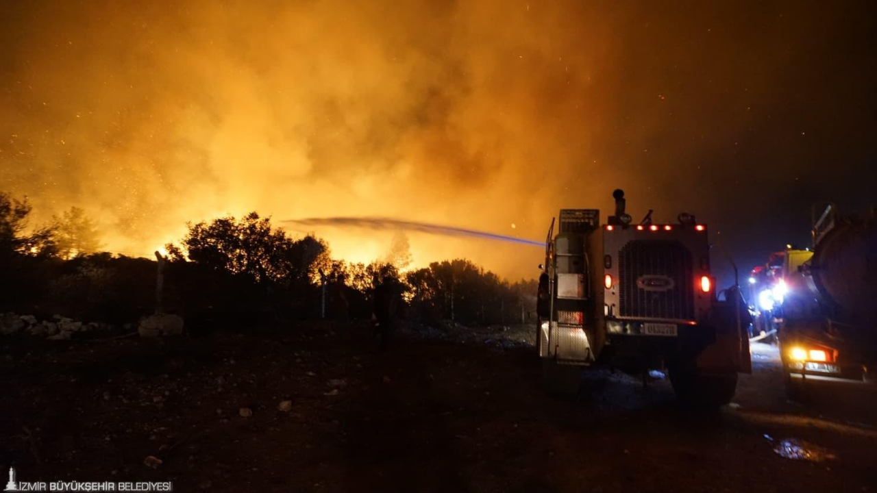 İzmir’de akşam saatlerinde Buca Batı Girişi’nde bir araçta başlayan yangın, kısa sürede kuru otlara, ardından da ormana sıçrayarak geniş bir alana yayıldı. Şiddetli rüzgarın etkisiyle Gaziemir Sarnıç’a kadar ilerleyen alevler, yerleşim yerleri ve askeri bölgeye yaklaşınca ekipler alarma geçti.