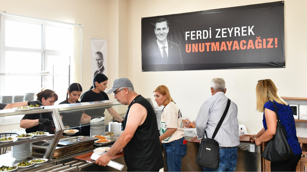 Ferdi Zeyrek’in sosyal belediyecilik anlayışını yaşatmak amacıyla gerçekleştirilen etkinlikte, Çiğli Belediyesi ana binasına “Unutmayacağız” yazılı branda asıldı. Vatandaşlar etkinliğe yoğun ilgi gösterirken, Belediye Başkanı Onur Emrah Yıldız da lokmaları tek tek dağıttı.