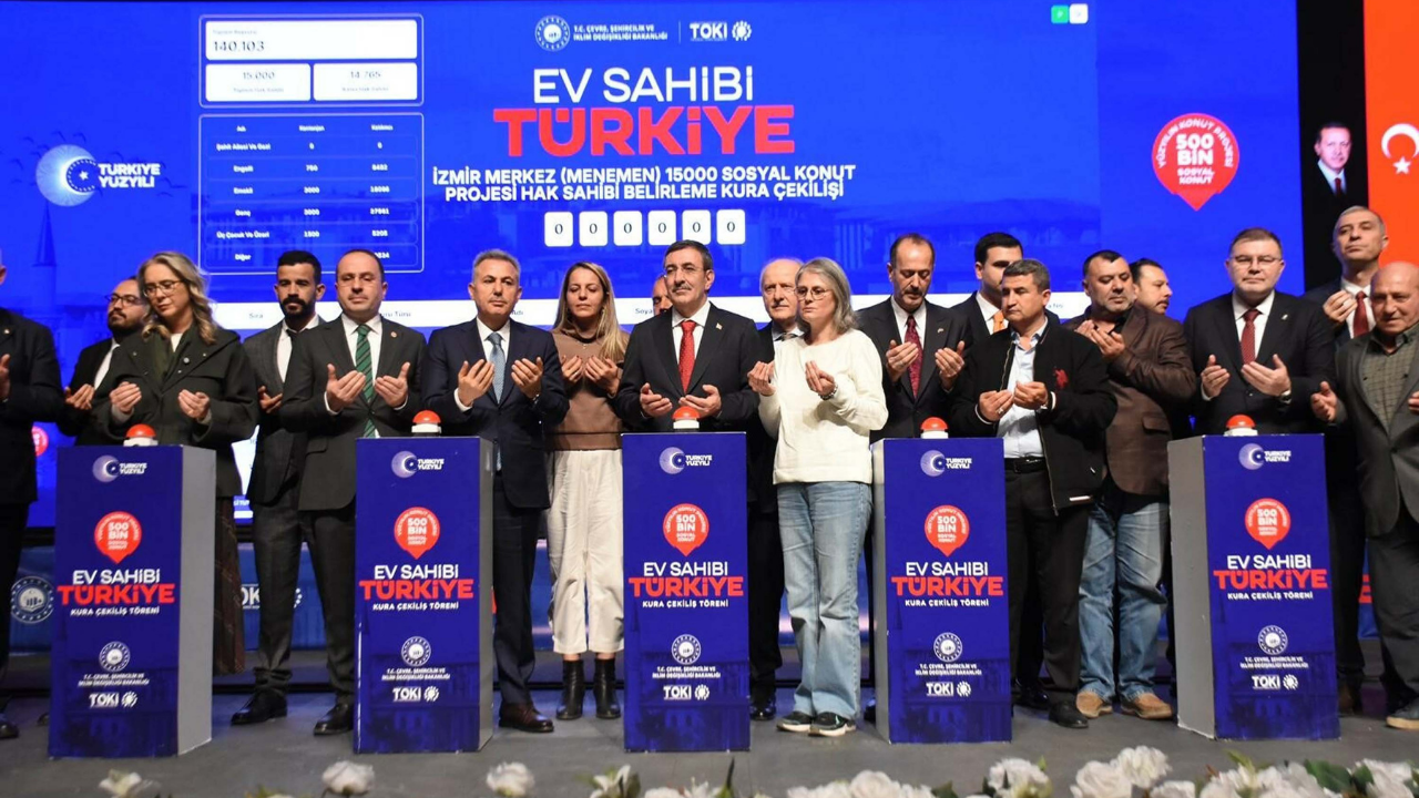 Toplu Konut İdaresi Başkanlığı (TOKİ) tarafından yürütülen 500 Bin Sosyal Konut Projesi kapsamında İzmir’de yapılacak 21 bin 020 konut için kura çekimi gerçekleştirildi. Törene çok sayıda siyasi ve bürokrat da katıldı.