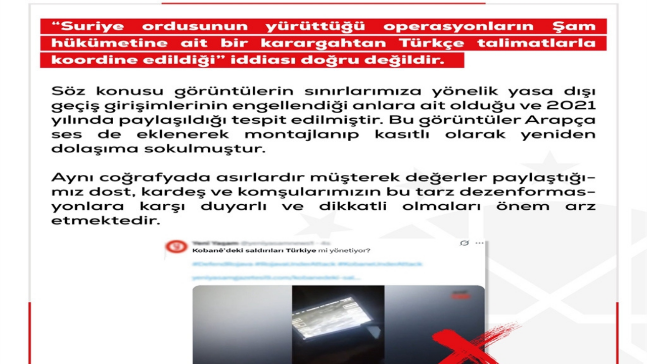 Açıklamada ayrıca, görüntülere Arapça ses eklenerek montaj yapıldığı ve içeriklerin kasıtlı biçimde yeniden dolaşıma sokulduğu vurgulandı. DMM, asırlardır aynı coğrafyada ortak değerler paylaşan dost, kardeş ve komşu halkların, bu tür dezenformasyon içeriklerine karşı duyarlı ve dikkatli olması gerektiğini ifade etti.