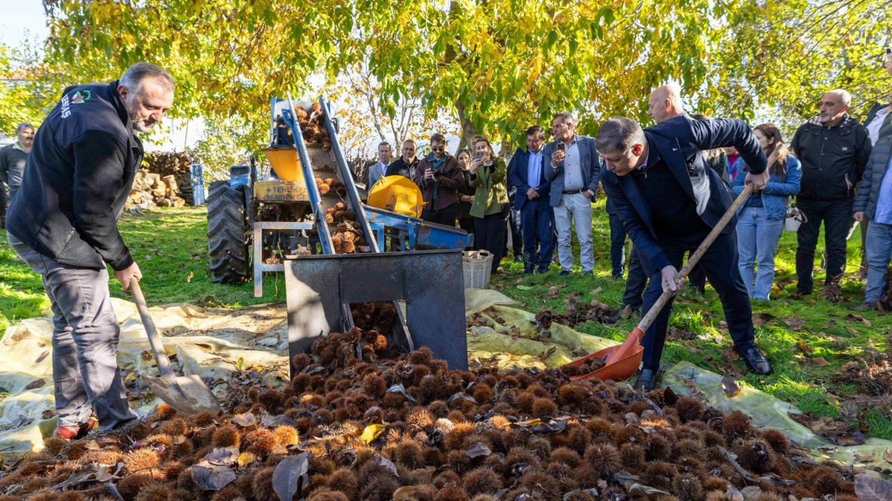 Küçük Menderes Havzası’nın zengin topraklarından yetişen, lezzetiyle ün yapan Beydağ kestanesinde hasat devam ediyor. Bölgenin kestane üreticileriyle buluşmak için Beydağ’a giden İzmir Büyükşehir Belediye Başkanı Dr. Cemil Tugay, Erikli Mahallesi’nde kestane hasatına katıldı. Başkan Dr. Cemil Tugay’a Beydağ Belediye Başkanı Şakir Başaran, İzmir Büyükşehir Belediyesi Genel Sekreter Yardımcısı Halit Çelik, belediye bürokratları, muhtarlar ve Beydağlı üreticiler eşlik etti. Erikli Mahallesi’ndeki köy meydanında geleneksel usullerle hazırlanan kestaneler fırınlara yerleştirildi. Başkan Tugay, program kapsamında zeytin hasadı yaptı ve yeni zeytin fidanlarını toprakla buluşturdu. Ziyarette Beydağlı üreticilerle sohbet eden Başkan Tugay, kestanede yaşanan hastalıklar ve tedavi süreçleri, kalite, rekolte gibi konularda bilgi aldı. Başkan Tugay, “Kestane çok değerli, gözümüz gibi korumamız gereken bir ürün. Her yerde yetişmiyor ama yetiştiği yerlerde de ciddi bir gelir sağlıyor. Bu bölgemizdeki kestanelerin büyük bir bölümü ihracata gidiyor. Kestanede başa bela gibi birkaç hastalık var. Büyükşehir Belediyesi olarak hastalığa dirençli ağaçlar dağıtarak, hastalıklarla mücadele ederek üreticilerimize destek oluyoruz. Bu şekilde çalışmaya devam edeceğiz” diye konuştu. İzmir Büyükşehir Belediyesi olarak tarımda teknoloji kullanımını teşvik etmeyi istediklerini belirten Başkan Tugay, “Bir taraftan üretimi destekleyip, bir taraftan sosyal yaşamı güçlendirmek için belediye başkanlarımızla planlama yapıyoruz. Bu ziyaretlerimizle, vatandaşlarımızdan duyduğumuz isteklerle çalışmalarımıza daha iyi yön veriyoruz” dedi.