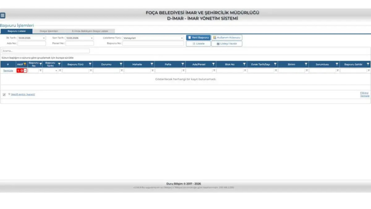 Belediye Başkanı Saniye Bora Fıçı, D-İmar uygulamasıyla Foça’daki imar işlemlerinin daha hızlı ve şeffaf bir hâle geldiğini vurguladı. Uygulama; ruhsat işlemleri, yapı kontrol süreçleri, encümen sevkleri, idari para cezaları, süre takipleri ve arşiv yönetimi ile birlikte ifraz, tevhit, yola terk, imar durumu belgesi, numarataj ve ön inceleme gibi parsel bazlı tüm işlemleri kapsıyor.