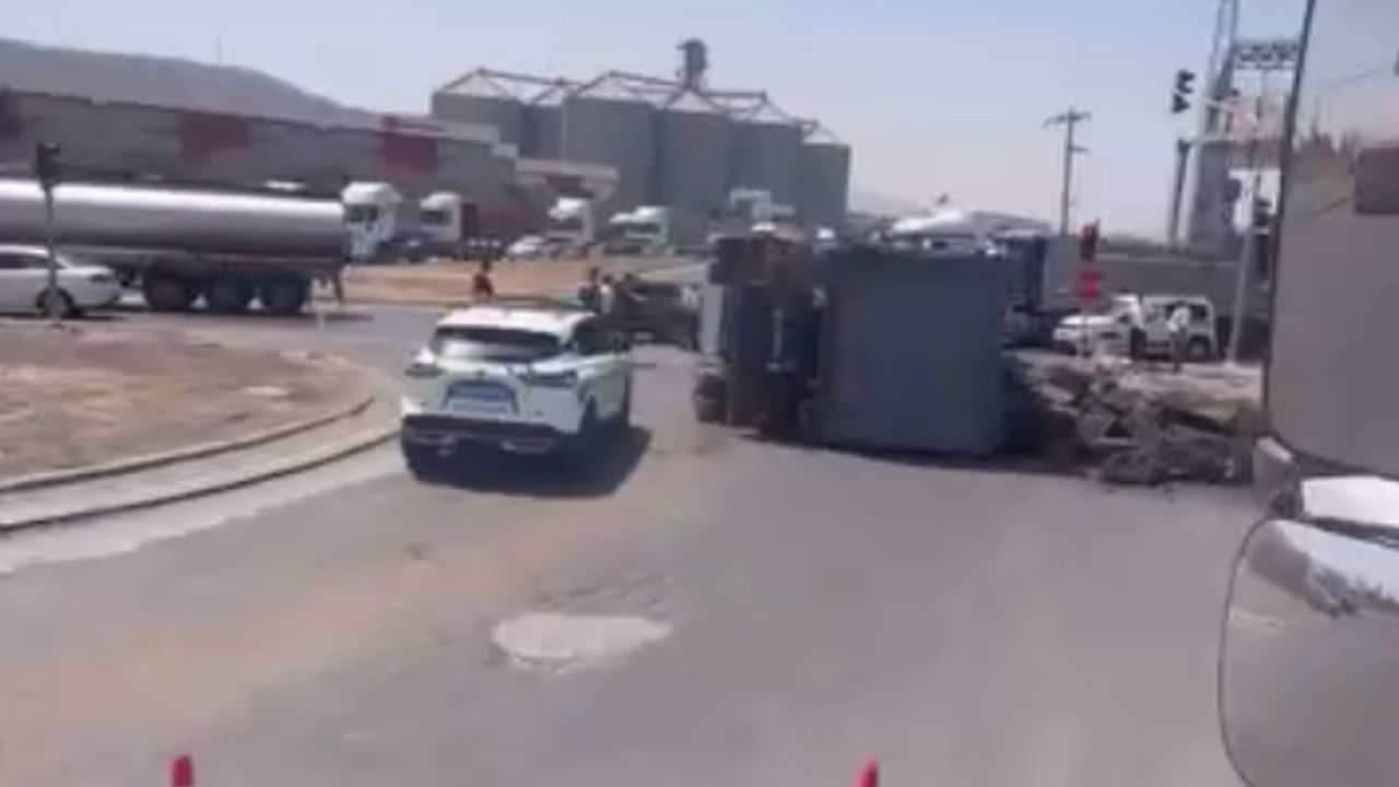 Foça Kavşağı’nda seyir halindeki bir kamyon, sürücüsünün kontrolü kaybetmesi sonucu devrildi. Kazanın ardından çevredeki vatandaşlar durumu yetkililere bildirdi.