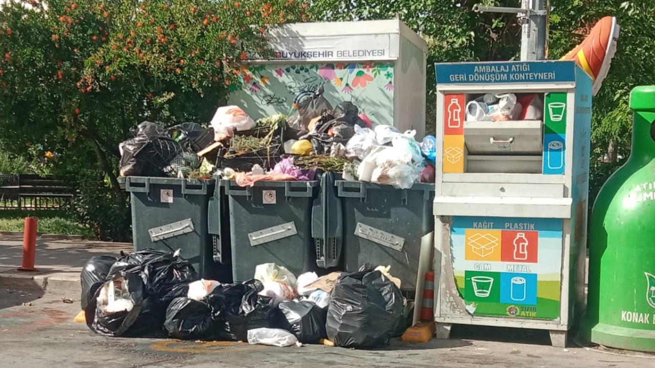 İzmir'in Konak ilçesinde çöpler artıyor. Belediye işçilerinin grevi nedeniyle toplanmayan çöpler, ilçeyi nefes alınmaz hale getirdi. Çöplerden dolayı oluşan kötü kokuya vatandaşlar tepki gösterdi.