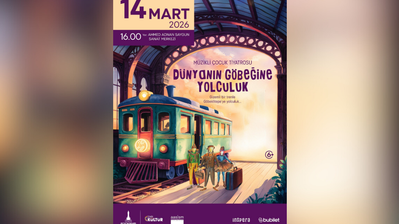 İzmir Büyükşehir Belediyesi tarafından “Dünyanın Göbeğine Yolculuk” adlı müzikli çocuk oyunu 14 Mart’ta Ahmed Adnan Saygun Sanat Merkezi’nde sahnelenecek. Oyun, izleyicileri Göbeklitepe’nin gizemli dünyasına götürecek.