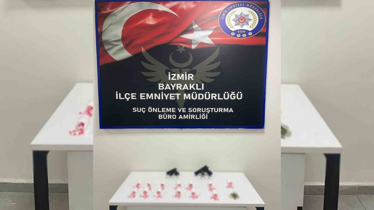 Bayraklı Suç Önleme ve Soruşturma Büro Amirliği ekipleri, dün gerçekleştirdikleri operasyonda Z.Ç. (26), E.K. (29) ve M.K.Ç. (14) isimli 3 kişiyi uyuşturucu ticareti suçlamasıyla yakalayarak gözaltına aldı. Şüphelilerin üzerlerinde yapılan aramalarda 2 adet ruhsatsız tabanca, 664 adet sentetik hap ve bir miktar esrar maddesi ele geçirildi.