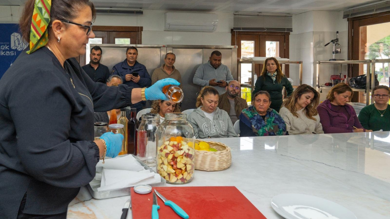 Antibakteriyel özelliği, antioksidan aktivitesi, kan basıncını düşürmesi, anti-diyabetik ve ağırlık kontrolüne olan etkisi ile sağlığa birçok olumlu etkisi bulunan sirke, farklı çeşitlerde yapılabiliyor. İzmir Büyükşehir Belediyesi Meslek Fabrikası Özdere Kurs Merkezi, sirkenin yapımı için özel bir atölye düzenledi. 15 katılımcıyla yapılan atölyede, Gümöz Kadın Kooperatifi ve Turuncu Eller Tarımsal Kalkınma Kooperatifi’nde yer alan Sevilay Feyizoğlu tarafından kapsamlı bir eğitim verildi. Elma, limon, portakal, zencefil ve ayva ile sirke yapımını öğreten Feyizoğlu, sirkenin faydalarını da aktardı. Sevilay Feyizoğlu, “Kooperatiflerimiz için üç-dört çeşit yapıyorum. Bireysel olarak da 60’ın üzerinde sirke çeşidim var. Isparta gülü, Meksika biberi, kekik, biberiye, ıhlamur, ada çayı, ananas gibi sirke çeşitleri örnek olarak sayılabilir. Ben sirkenin çok faydasını gördüm. Hiçbir yerde sirke yapımı konusunda eğitim verilmediği için kendim araştırarak öğrendim. Daha sonra çevrimiçi eğitimlere katıldım. Deneyerek öğrendim. Turuncu Eller Tarımsal Kalkınma Kooperatifi’ne Cemil Tugay başkanımız gelmişti. Ona sirke yapımından bahsedince böyle bir atölye düzenlemeyi teklif etti. Böylelikle atölyemizi düzenledik. Bugün eğitime, yapımı en kolay sirke olan elmadan başladık. Hangi ürünlerle sirke yapılabileceğini ve sirkenin faydalarını anlattım” dedi. Atölyeye katılanlardan Aysun Önal, Meslek Fabrikası’ndaki eğitimleri sürekli takip ettiğini belirterek “Mümkün olduğu kadar bana uygun olan veya kendimi değiştirebileceğim bütün kurslara katılmaya çalışıyorum. Sirke yapımını daha önce merak ettim ama cesaret edip başlayamamıştım. Atölye yapılacağını öğrendiğimde hemen katılmak istedim. Hocamız çok güzel bilgiler veriyor. Başarılı olacağımıza inanıyorum. En doğalı, en güzeli evde yaptığınız sirkedir. Hocamızın 60 çeşit sirke yaptığını duymak bizi çok heyecanlandırdı. Eve gider gitmez hemen sirke kurmaya başlayacağız” diye konuştu. Katılımcılar arasında Seferihisarlı çiftçilerin katma değerli ürün elde etmesi için mandalina sirkesi yapmayı öğrenmek isteyenler de vardı. Fatih Oktay, Seferihisar Belediyesi İklim Değişikliği ve Sıfır Atık Müdürlüğü çalışanı olarak bu atölyeye katıldığını belirterek “İlçemizin tarımı mandalinaya dayalı. Bu sezon, mandalinanın satışında ve tüketiminde düşüklük yaşıyoruz. Çiftçimiz bu konuda mağdur. Çiftçimizin yaşadığı mağduriyeti giderebilmek adına tüccarın almadığı mandalinayı farklı alanlarda nasıl değerlendirebiliriz diye araştırıyoruz. Bu yüzden sirke yapımı atölyesine gelmek istedik. Niyetimiz, çiftçimize ek bir gelir olarak mandalinadan sirke yapımını sağlayıp çiftçiye destek vermek. Alternatifleri değerlendirmek adına saha çalışması yapmış oluyoruz” sözlerine yer verdi. Atölyeye katılan Şükran Barut isimli katılımcı, “İzmir Büyükşehir Belediyesi Meslek Fabrikası’nın açtığı kursları takip ediyorum. Sirke atölyesinin açılacağını öğrenince katılmak istedim. Sirkeyi evde yapıyoruz ama burada bilimsel olarak nasıl yaparız, bunun püf noktaları nelerdir, bunları öğreniyoruz. Kapitalist düzen her şeyi satın almamızı istiyor. Ancak evde organik yiyecekler yapmak, doğal yiyecekleri değerlendirmek çok kıymetli” ifadelerini kullandı.