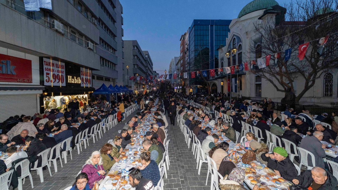 Ramazan ayında dayanışma ruhunu canlı tutmak, sofraların bereketini artırmak amacıyla İzmir Büyükşehir Belediyesi'nin ilçelerde düzenlediği iftar programları devam ediyor. Her akşam kurulan iftar sofralarına katılmaya özen gösteren İzmir Büyükşehir Belediye Başkanı Dr. Cemil Tugay, bu kez Kemeraltı'nda Milli Kütüphane Caddesi'nde İzmirlilerle birlikte oruç açtı. Programa Konak Belediye Başkanı Nilüfer Çınarlı Mutlu, belediye meclis üyeleri, siyasi partilerin temsilcileri, bürokratlar, mahalle muhtarları ve Kemeraltı esnafı da katıldı. Masaları tek tek dolaşarak yurttaşlarla sohbet eden Başkan Tugay, gençler ve çocuklarla hatıra fotoğrafı çektirdi.