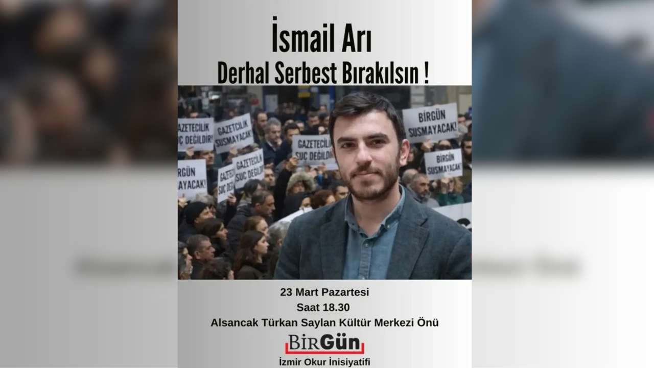 İzmir BirGün Okur İnisiyatifi, Arı’ya destek vermek ve gazetecilerin susturulamayacağını göstermek amacıyla bugün saat 18:30’da Türkan Saylan Kültür Merkezi önünde toplanma çağrısı yaptı.
