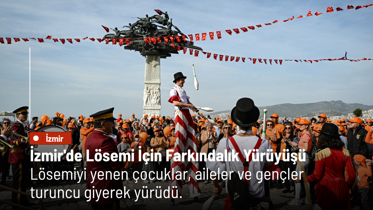 İzmir'de, 2-8 Kasım Lösemili Çocuklar Haftası kapsamında Lösemili Çocuklar Sağlık ve Eğitim Vakfı (LÖSEV) tarafından geçici korteji ve şenliği düzenlendi. Lösemiyi yenen çocuklar, aileleri ve çok sayıda gönüllünün katıldığı etkinlik renkli görüntülere sahne oldu.