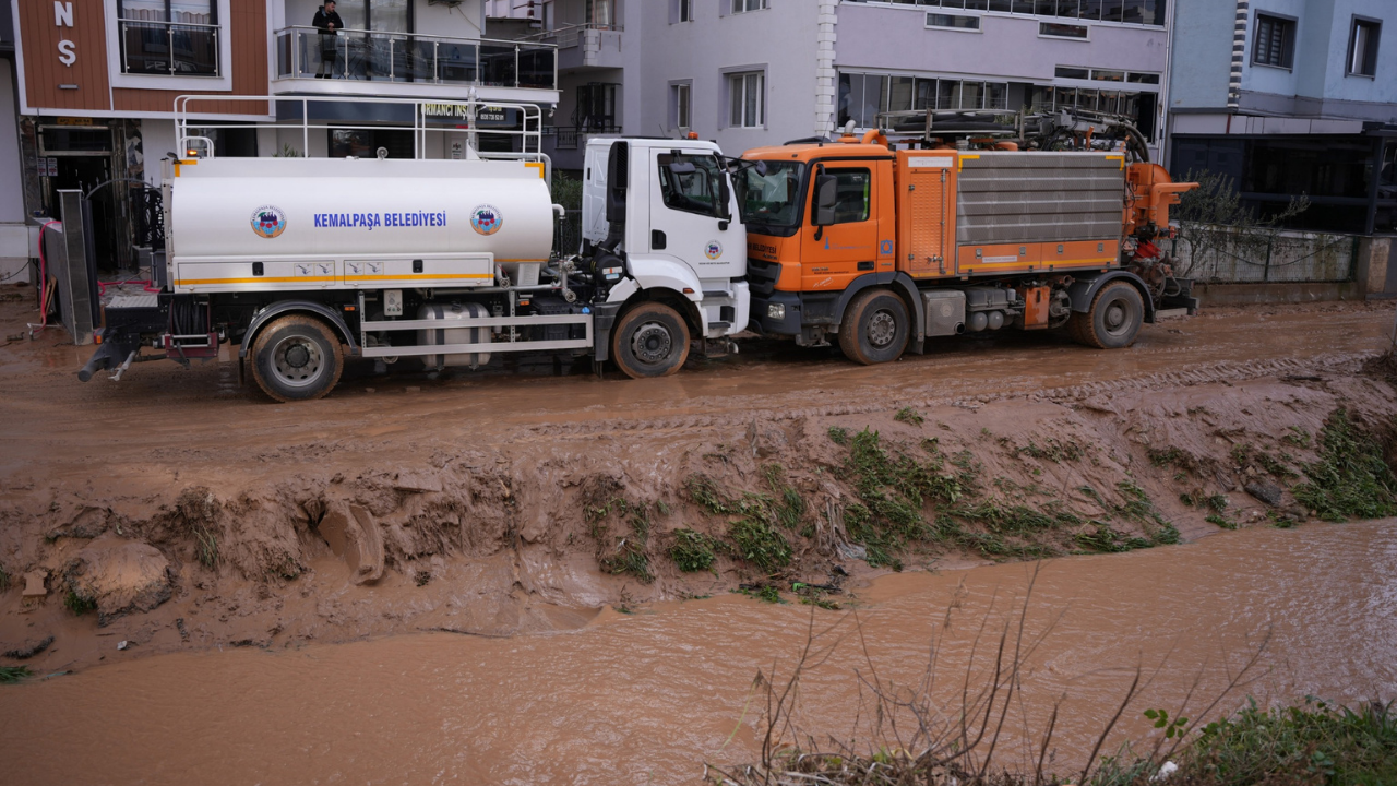 Kemalpaşa’nın Ulucak Mahallesi’nde yaşanan taşkın sırasında dört araç İncepınar Deresi’ne sürüklendi. Araçlardan üçü menfezin diğer ucundan çıkmayı başarırken, bir araç menfez içerisinde sıkışarak kaldı. Olayda can kaybı ya da yaralanma yaşanmadı.