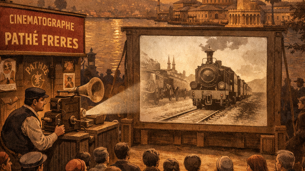 1896 yılında Fransa’da kurulan Pathé Frères, kısa süre içinde sinema filmleri üretip gösteren, taşınabilir projeksiyon ve gezici ekipmanlarıyla ünlü bir şirket hâline geldi. İzmir’de 1900’lerin başında, Pathé Frères’in gezici film ekipleri ilk gösterimlerini gerçekleştirdi. Bu gösterimler, genellikle açık alanlar, kafeler ve tiyatro salonları gibi halka açık mekanlarda yapıldı ve İzmir halkı için sinemayla tanışma fırsatı sundu.