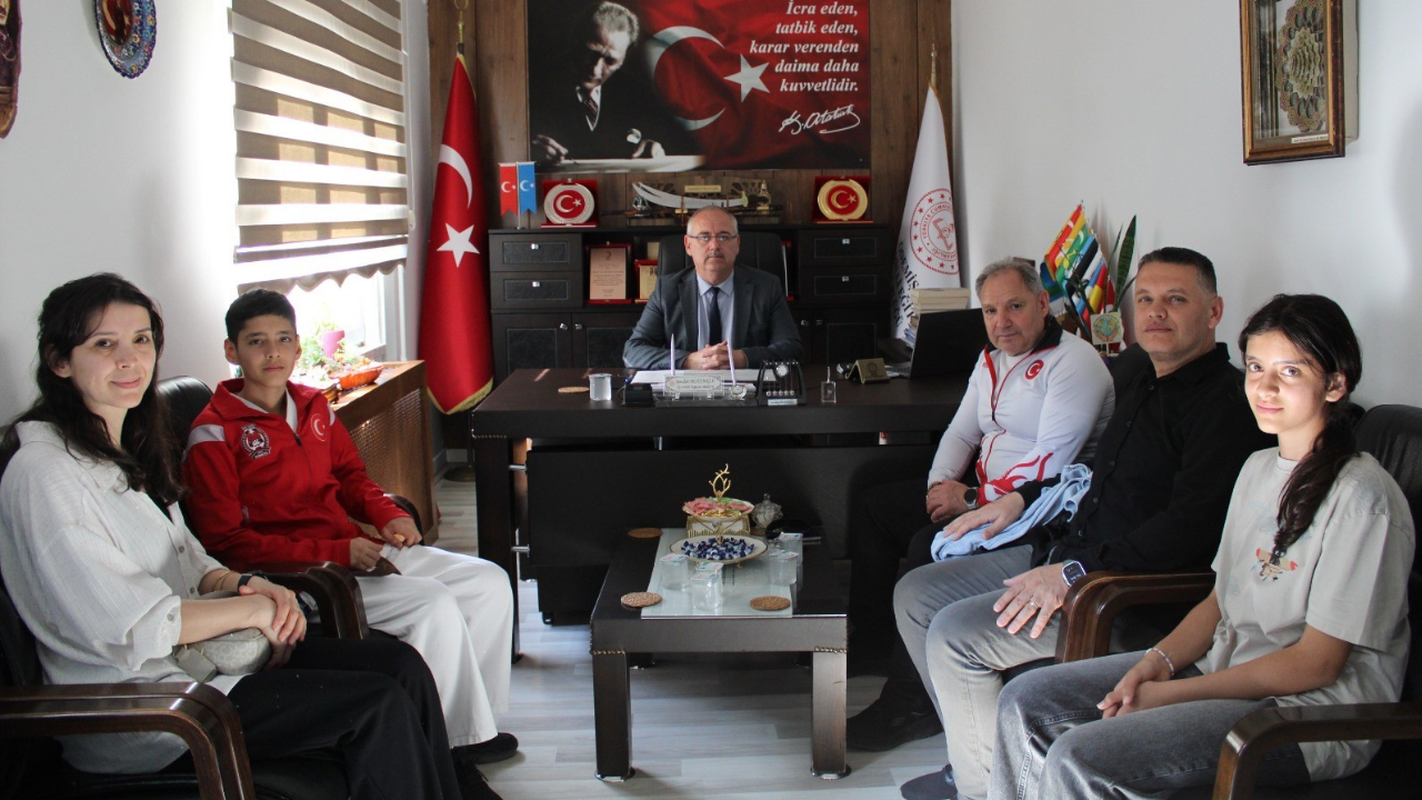 Ödemiş İlçe Milli Eğitim Müdürü Sunullah Desticioğlu, milli sporcu Görkem Uludoğan’ı makamında ağırladı. Ziyaretten duyduğu memnuniyeti dile getiren Desticioğlu, genç sporcunun uluslararası arenada ülkeyi temsil edecek olmasının önemli olduğunu vurguladı. Uludoğan’ın disiplinli çalışmasıyla dikkat çektiğini belirtti. Antrenör Mustafa Doğan Turhan’a da emeklerinden dolayı teşekkür etti. Desticioğlu, sporun gençlerin gelişiminde önemli bir rol oynadığını ifade etti. Uludoğan’ın elde ettiği başarıların diğer öğrencilere de örnek olacağını söyledi. Şampiyonada Türkiye’yi en iyi şekilde temsil edeceğine inandığını dile getirdi. Ziyaret, iyi dileklerin paylaşılmasıyla sona erdi.