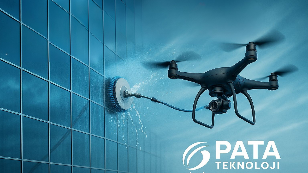 İzmir’de faaliyet gösteren Pata Teknoloji, binaların dış cephe temizliğinde droneların kullanıldığı modern bir sistem geliştirdi. Halatlı ve vinçli geleneksel yöntemlerin aksine, özel ekipmanlarla donatılmış dronelar sayesinde hem zamandan hem de maliyetten tasarruf sağlanıyor.