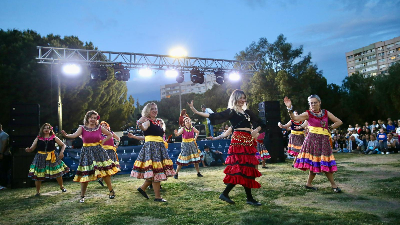 Karşıyaka Belediyesi Halk Dansları Topluluğu’nun Alper Özarslan ve Burak Elibüyük rehberliğinde sergilediği Roman dansı gösterisi ile başlayan şenlikte, renkli görüntüler oluştu. Etkinliğin devamında Karşıyaka Belediye Orkestrası, Şef Hüseyin Çetin yönetiminde seslendirdiği eserlerle kalabalığa müzik ziyafeti sundu.