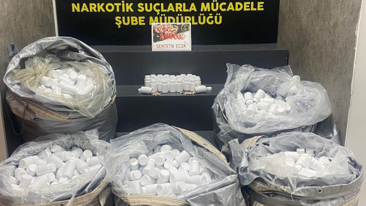 Kemalpaşa ilçesinde durdurulan bir araçta yapılan aramada 156 bin 600 adet sentetik ecza ele geçirildi.