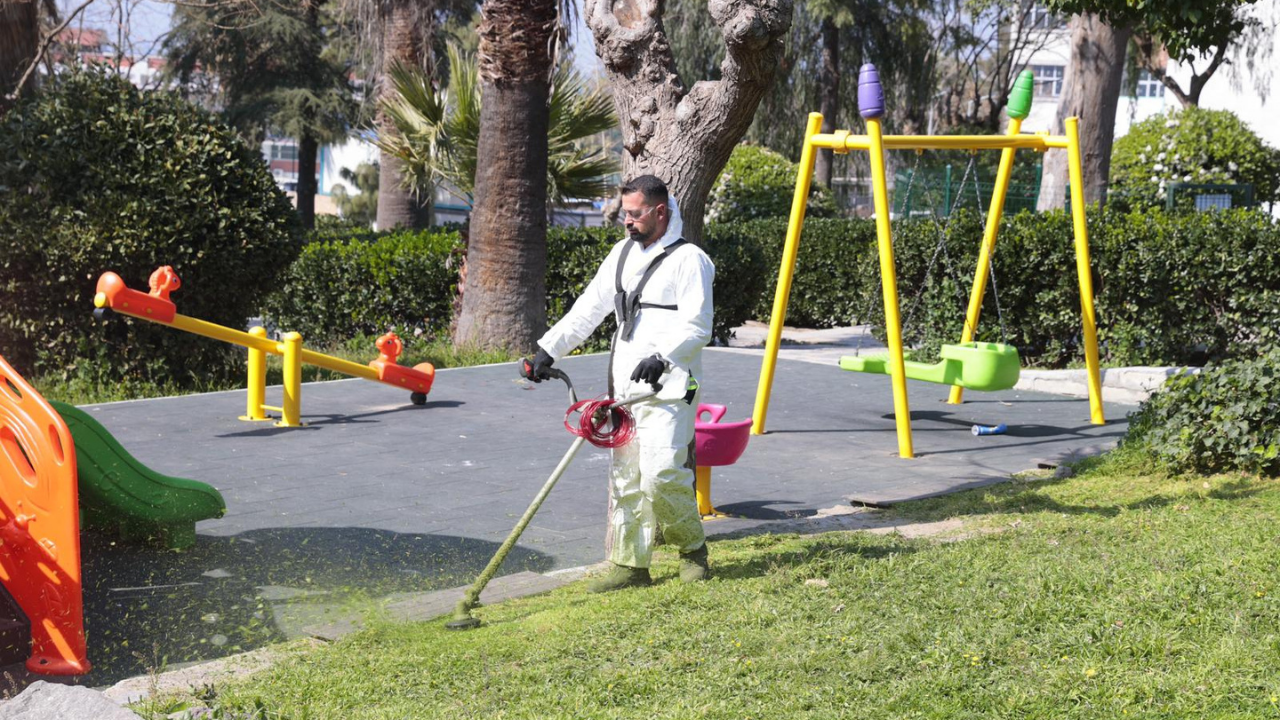 Baharın yüzünü göstermesiyle çoğalan yabani otların temizlendiği ve çimlerin biçildiği çalışmalar, sadece park alanlarıyla sınırlı kalmadı. Park çevreleri ve bağlantılı sokaklarda da devam eden çalışma kapsamında özellikle kuruyan dallar nedeniyle risk oluşturan ağaçlar tespit edilerek budandı. Böylece hem çevre güvenliği sağlandı hem de şehre estetik bir görünüm kazandırıldı. Sokaklara taşan yabani otlar da temizlenerek yayalar için sağlıklı ve güvenli bir yürüyüş ortamı oluşturuldu.