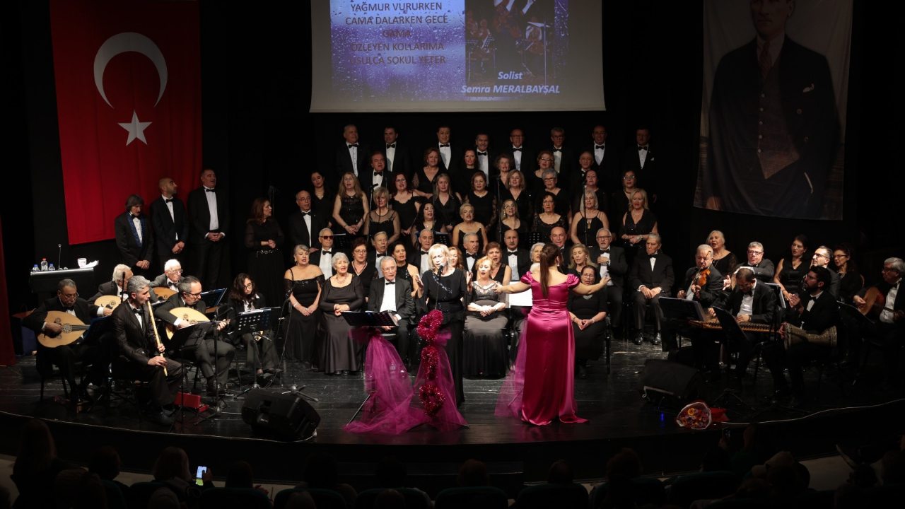 Konak Belediyesi'nin Sevgililer Günü etkinlikleri kapsamında düzenlediği Türk Sanat Müziği konseri sevgiyi notalarla dile getirdi. Güzelyalı Nazım Hikmet Kültür Merkezi'nde gerçekleştirilen konserde Konak Belediyesi Türk Sanat Müziği Korosu, Şef Deniz Aygün Araal yönetiminde sahne aldı. Türk Sanat Müziğinin klasik eserlerinin solo performanslar ve koroyla seslendirildiği geceye yoğun ilgi olurken dinleyiciler her şarkıya eşlik etti. "Hiçbir Şeyde Gözüm Yok, "Aşkımız Ne Güzeldi Gittiğinde Anladım", "Eski Dostlar", "Seni Çılgın Gibi Sevdim" gibi sevgiyi dile getiren şarkıların peş peşe sıralandığı konser bir de sürprize sahne oldu. Koro üyeleri, doğum günü olan şefleri Deniz Aygün Araal'a pasta sürprizi yaptı. Araal mumları kızıyla birlikte üfledikten sonra "Bugün bu salon doldu, taştı, çok teşekkür ediyorum. Güzelyalı Kültür Merkezimizde, kendi evimizde Sevgililer Günü konseri vermekten çok mutluyuz. Bize bu fırsatı sunduğu için Konak Belediye Başkanımız Sayın Nilüfer Çınarlı Mutlu'ya çok teşekkür ediyoruz. Çok değerli bir koromuz, çok değerli saz sanatçılarımız var. Biz hep birlikte kocaman bir aileyiz" diye konuştu.