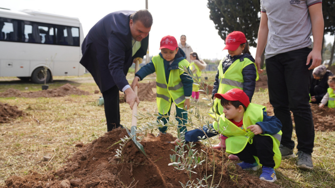 Seferihisar Belediyesi öncülüğünde gerçekleştirilen fidan dikim etkinliğinde çocuklar, doğaya katkı sunmanın heyecanını yaşadı.