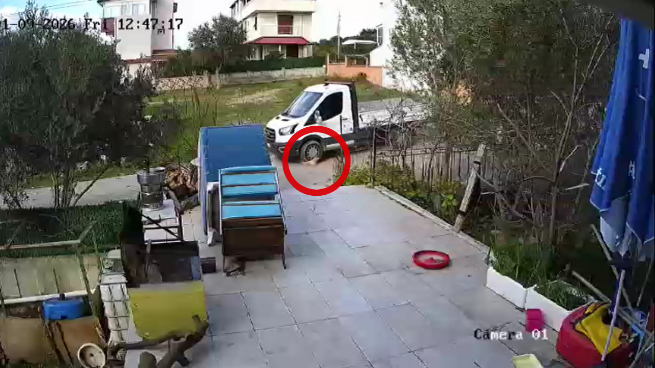 İzmir’in Seferihisar ilçesinde yol kenarında yatarken kamyonetin üzerinden geçtiği ‘Meks’ adlı sahipli köpek yaşamını yitirdi. Olay anı, çevredeki bir evin güvenlik kamerası tarafından kaydedildi.