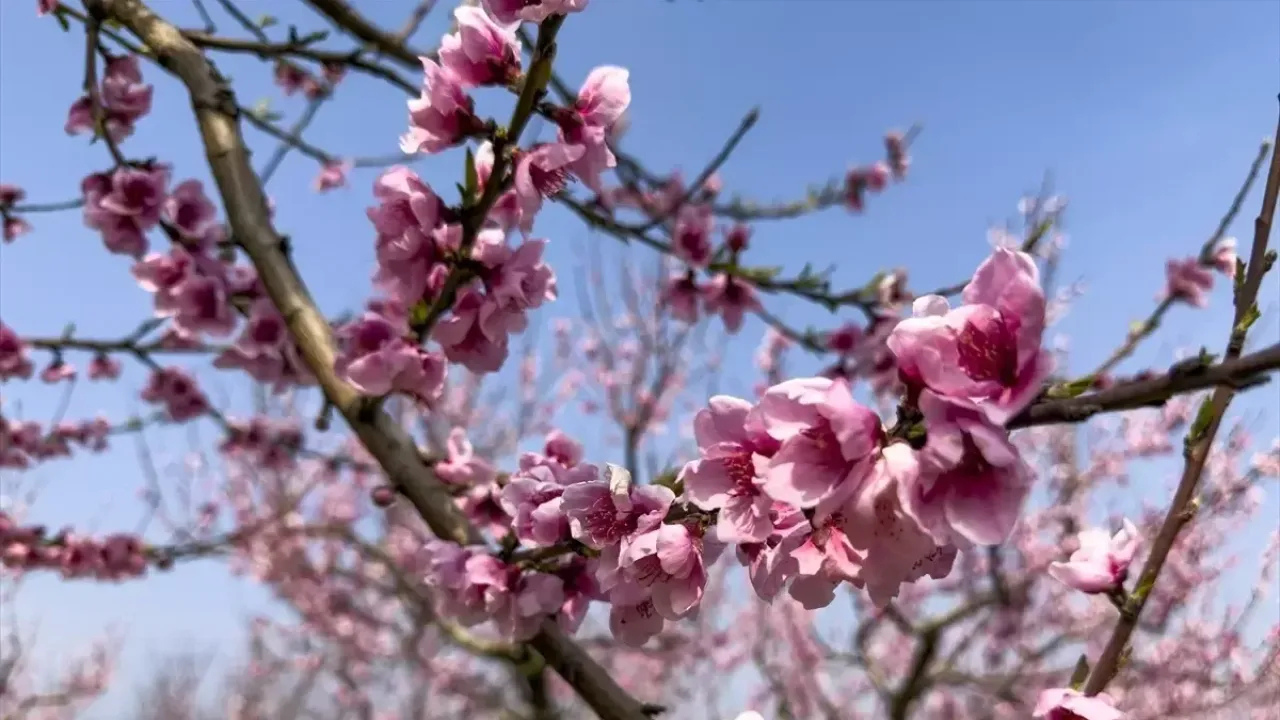 Şeftali ağaçlarının çiçek açmasıyla birlikte bahçeler pembe tonlara büründü. Ortaya çıkan manzara, bölge halkı ve çiftçiler için hem görsel bir zenginlik hem de baharın gelişinin en güzel göstergelerinden biri oldu.