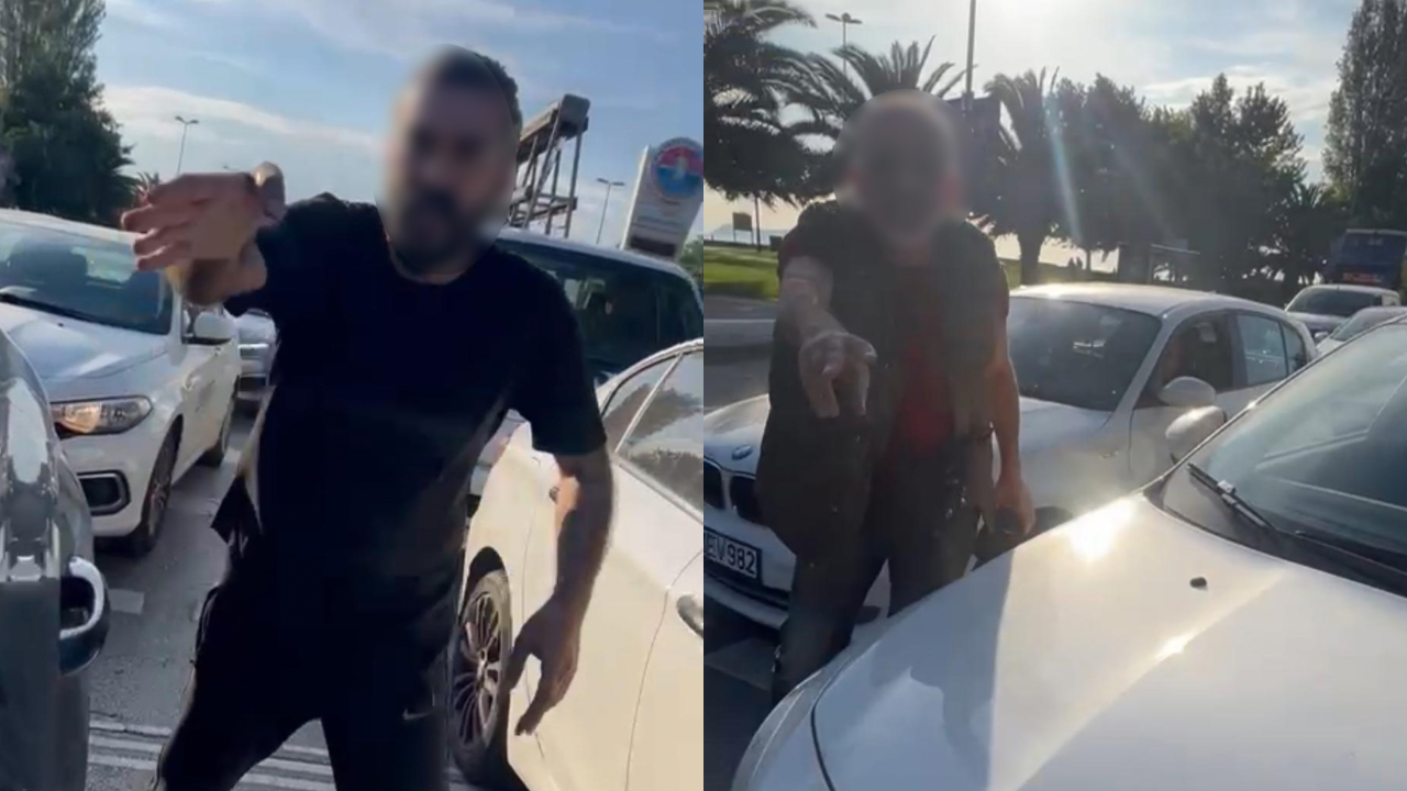 Bir süre sonra aracından inen erkek sürücü, kadın sürücünün yanına geldi. Burada hakaret etmeye başlayan saldırgan, kadının elindeki cep telefonunu alarak yüzüne fırlattı. O anlar, kadının cep telefonu kamerasıyla kaydedildi.