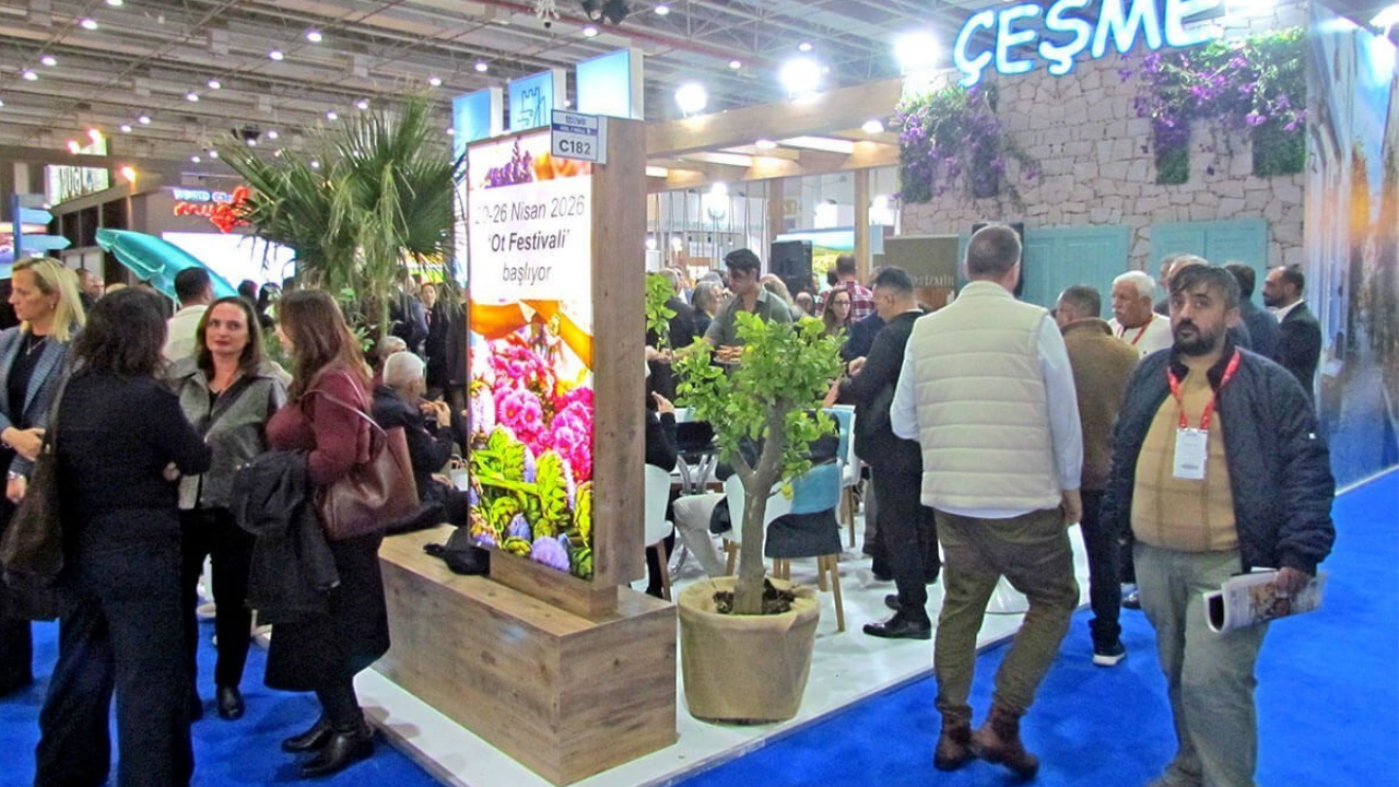 İZFAŞ ve TÜRSAB organizasyonuyla düzenlenen fuar, 3–5 Aralık tarihleri arasında 54 ülkeden ve Türkiye’nin 30 ilinden turizm profesyonellerini ağırlıyor. Bu yıl fuarda, Çeşme Belediyesi, ÇEŞTOB ve Alaçatı Turizm Derneği ortak bir tanıtım çalışması yürüterek Çeşme’yi birlikte temsil etti. Yoğun ilgi gören Çeşme standı, ziyaretçilerin ilk uğrak noktalarından biri oldu.