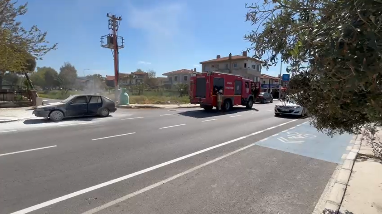 İzmir’in Urla ilçesi İskele Yolu üzerinde bir araçta yangın çıktı. Alevlere kısa sürede müdahale eden itfaiye ekipleri, yangını kontrol altına aldı.