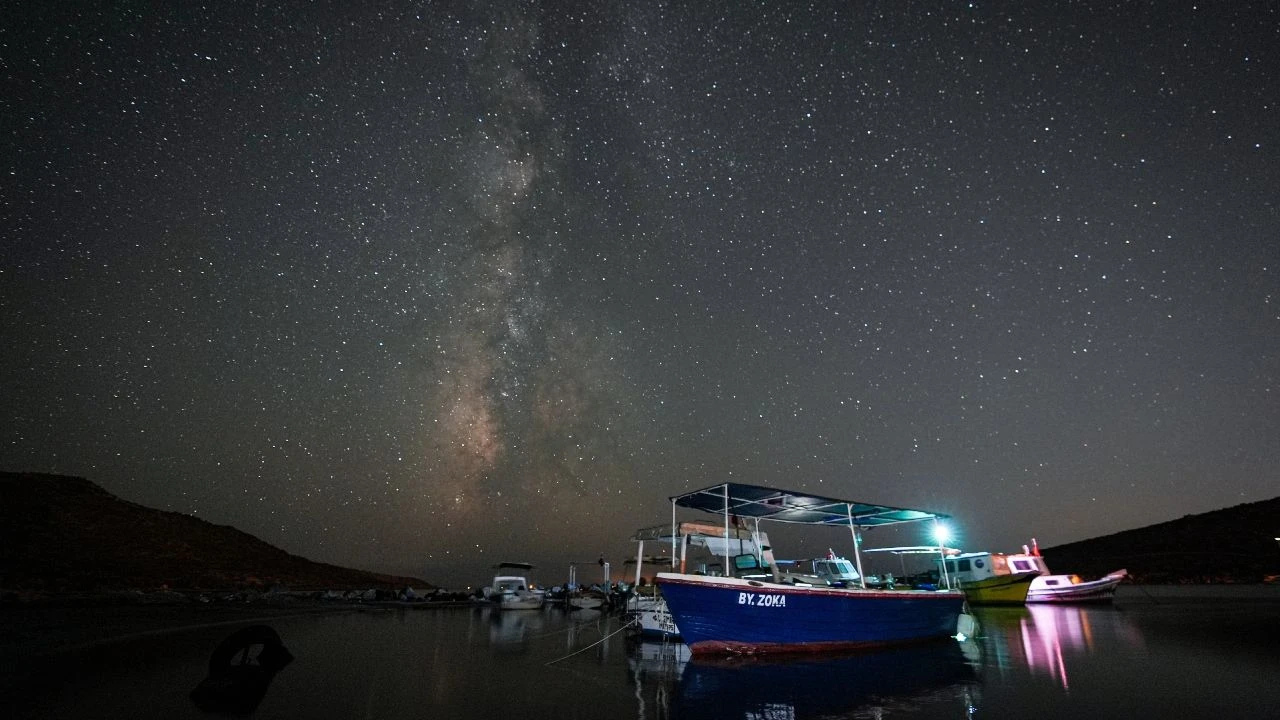 İzmir’in Urla ilçesindeki Zeytineli Plajı, gece saatlerinde eşsiz bir doğa manzarasına sahne oldu. Uzun pozlama tekniğiyle kaydedilen karelerde Samanyolu Galaksisi tüm ihtişamıyla görüldü.